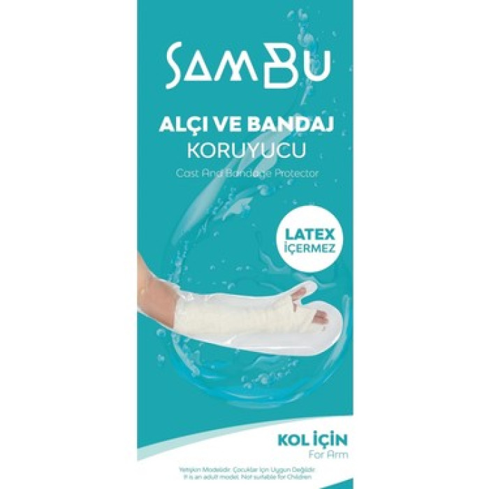 Sambu Alçı ve Bandaj Koruyucu (Kol İçin), alçı veya bandajlı kolun su ve dış etkenlerden korunmasını sağlayan pratik bir üründür. Su geçirmez yapısı sayesinde duş ve günlük kullanım sırasında alçının kuru kalmasına yardımcı olur.