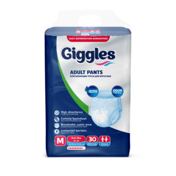 Giggles Yetişkin Emici Külot Bez Orta Boy (Medium) 30'lu 1 Paket (30 Adet) Bel Boy 70-120 cm