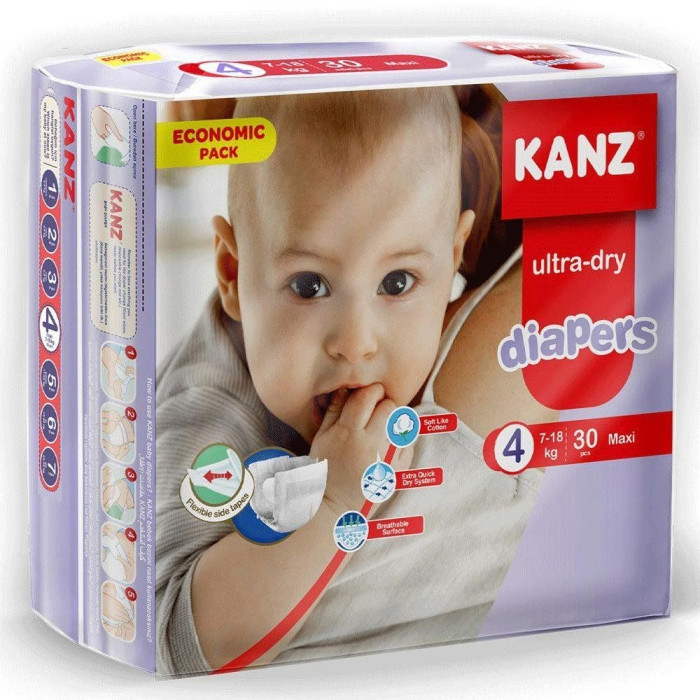 Kanz Ekonomik Paket Bebek Bezi Ultra-Dry Maxi 7–18 kg No:4 30’lu